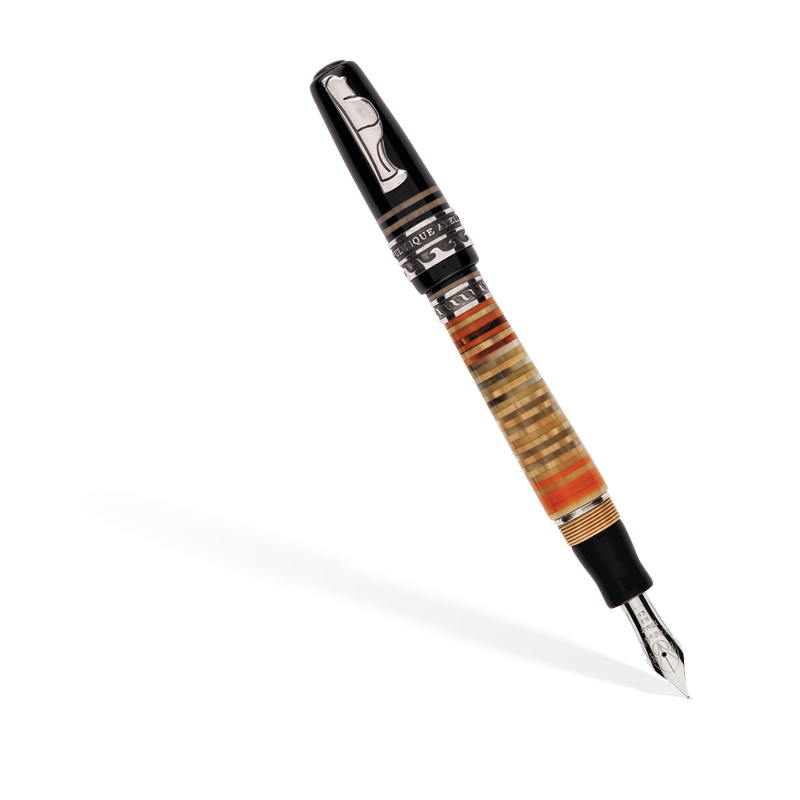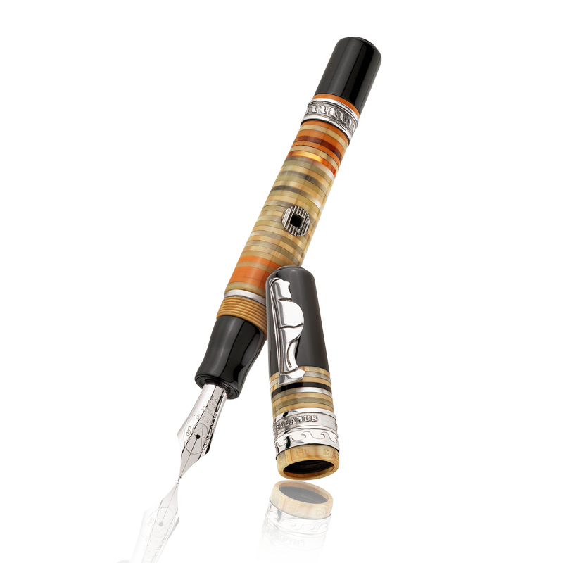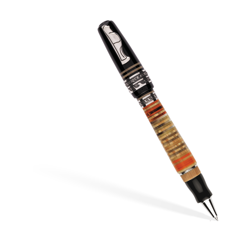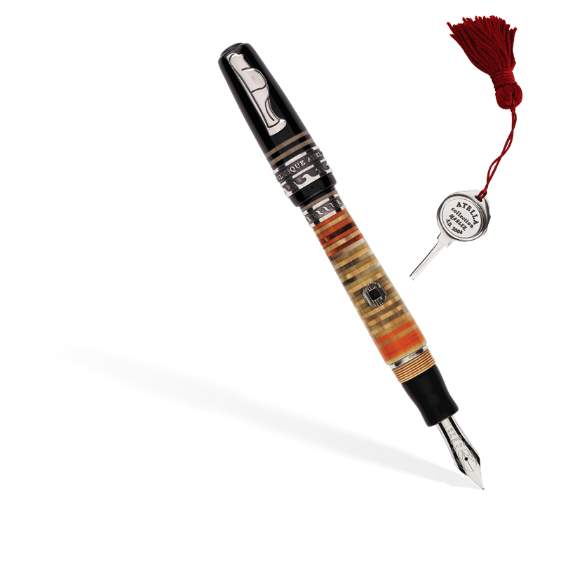 Questa collezione rende omaggio agli appassionati di storia e collezionisti che desiderano avere un pezzo unico ispirato all’Antica Atella. Atella è l’antico nome che nel V secolo a.C. aveva il territorio circostante la città di S. Arpino, dove attualmente ha sede la Marlen. Antica Atella presenta un fusto realizzato in resina italiana ad anelli multicolori, incollati a mano uno per uno e rifiniti con precisione infinitesimale. Le finiture della penna sono realizzate in argento massiccio. La clip della penna simboleggia Maccus, uno dei personaggi delle maschere tipiche di Atella, in argento massiccio. La stilografica Antica Atella è prodotta in due versioni: con caricamento a stantuffo (limitata a 988 pezzi), oppure a compressione laterale con chiave in argento (limitata a 888 pezzi). Completa la collezione la versione roller (limitata a 488 pezzi).