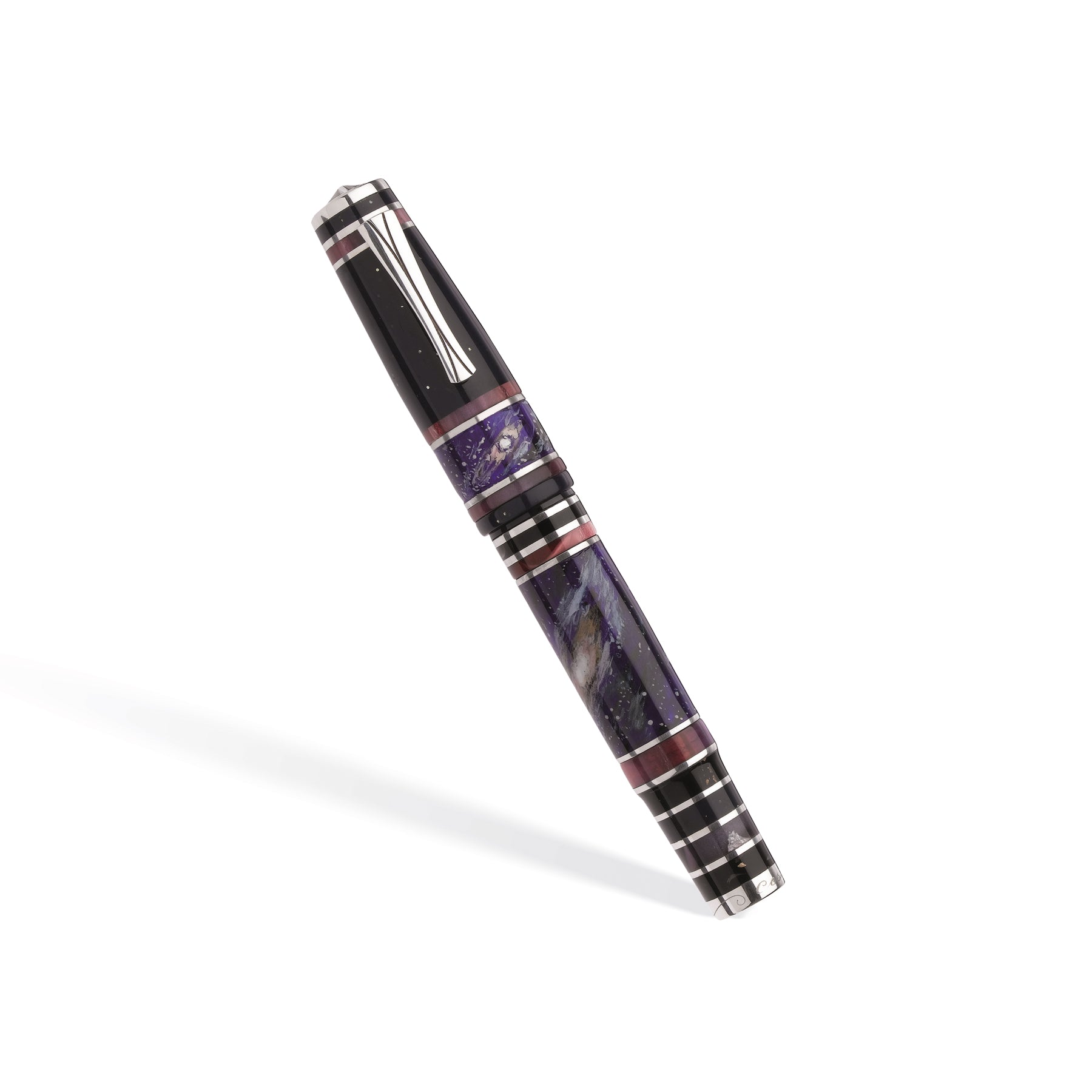 La Via Lattea è la galassia nella quale si trova il sistema solare. Il suo nome è la traduzione del latino Via Lactea che deriva dal Greco Γαλαξίας (Galaxias). Marlen ha avuto il piacere di creare questa edizione limitata di sole 38 stilo e 28 roller dedicate al mondo dell’astronomia. E’ stata utilizzata una speciale tecnica di smaltatura a caldo per la raffigurazione del dipinto. La smaltatura a caldo è usata tramite un processo che prevede la liquefazione di cristalli polverizzati ad una temperatura tra 650 e 800 gradi. Numerosi stadi sono richiesti per produrre il prodotto finale. Il soggetto viene prima dipinto su di un fondo di smalto trasparente usando cristalli colorati mischiati con oli speciali. La penna viene poi cotta numerose volte per fissare il dipinto. Una volta raggiunto il risultato desiderato, la miniatura viene poi coperto con uno strato di smalto trasparente e ripulito.